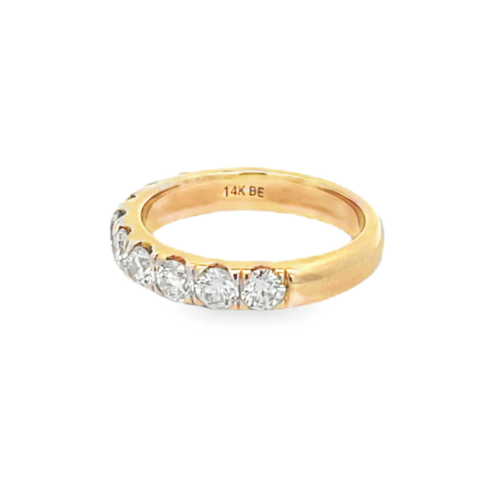 A 14K Yellow Gold wedding band that balances timeless warmth with refined sparkle, featuring 1.50 ctw of round natural diamonds (Color G–H, Clarity SI1). Evokes enduring grace and offers confident sophistication for everyday wear. View our Jewelry Collections