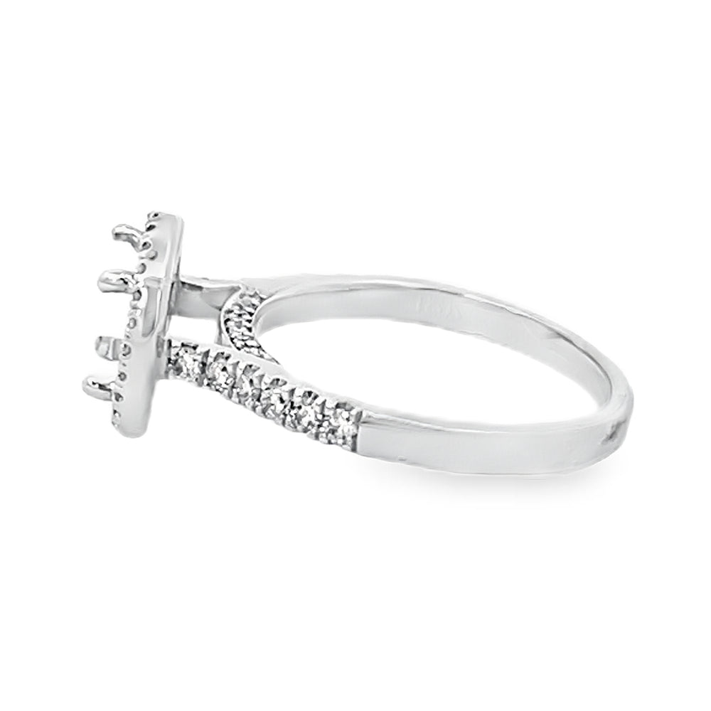 A White Gold Diamond Semi Mounting evoking modern elegance and quiet confidence, crafted in 14K white gold with 0.55 ctw of natural round diamonds (G–H, SI2+). This mounting delivers refined sophistication and lasting wearability, a meaningful choice that elevates a custom center stone. View our Jewelry Collections