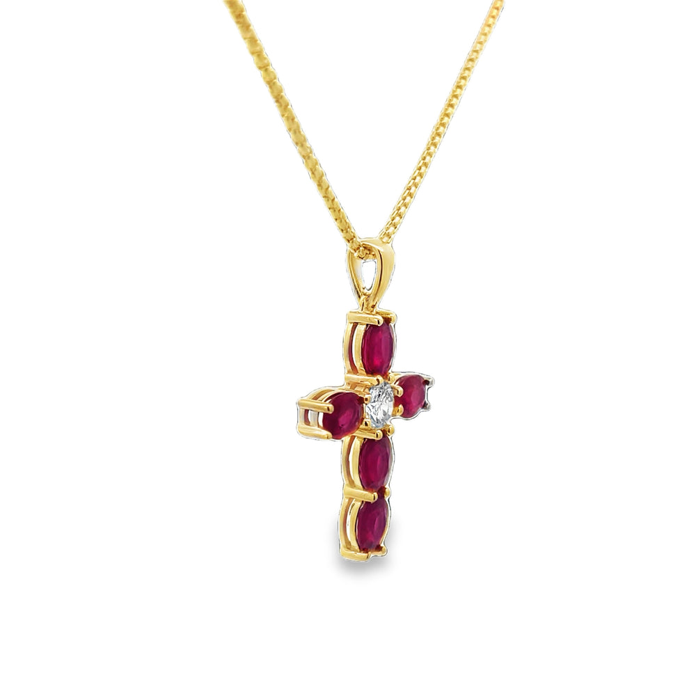 A Ruby and Diamond Cross Pendant in 14K Yellow Gold that evokes quiet devotion and refined warmth, offering a sense of enduring grace and confident elegance. Featuring 0.76 ctw diamonds and 5.12 ctw rubies, this piece delivers bold color and luminous sparkle. View our Jewelry Collections