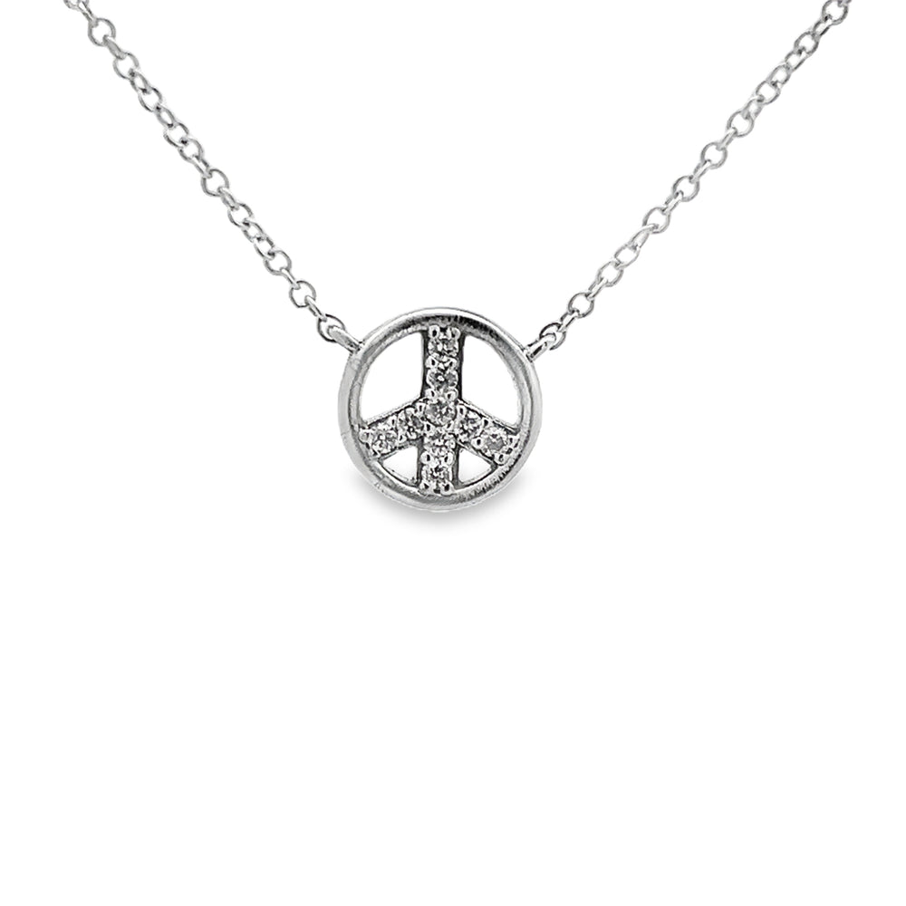 A graceful Diamond .07ct Peace Necklace in 14K White Gold that evokes calm and modern elegance, offering a subtle statement of serenity and refined style. Chain lengths 16" and 17.5" let you tailor the fit for layered looks. View our Jewelry Collections