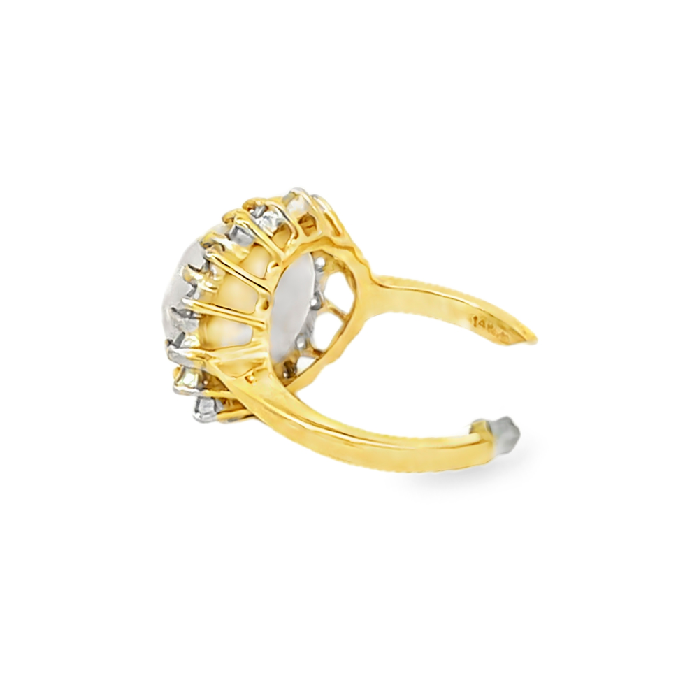 14K Yellow Gold Round Cut Diamond And Mabe Pearl Ring 0.35ctw