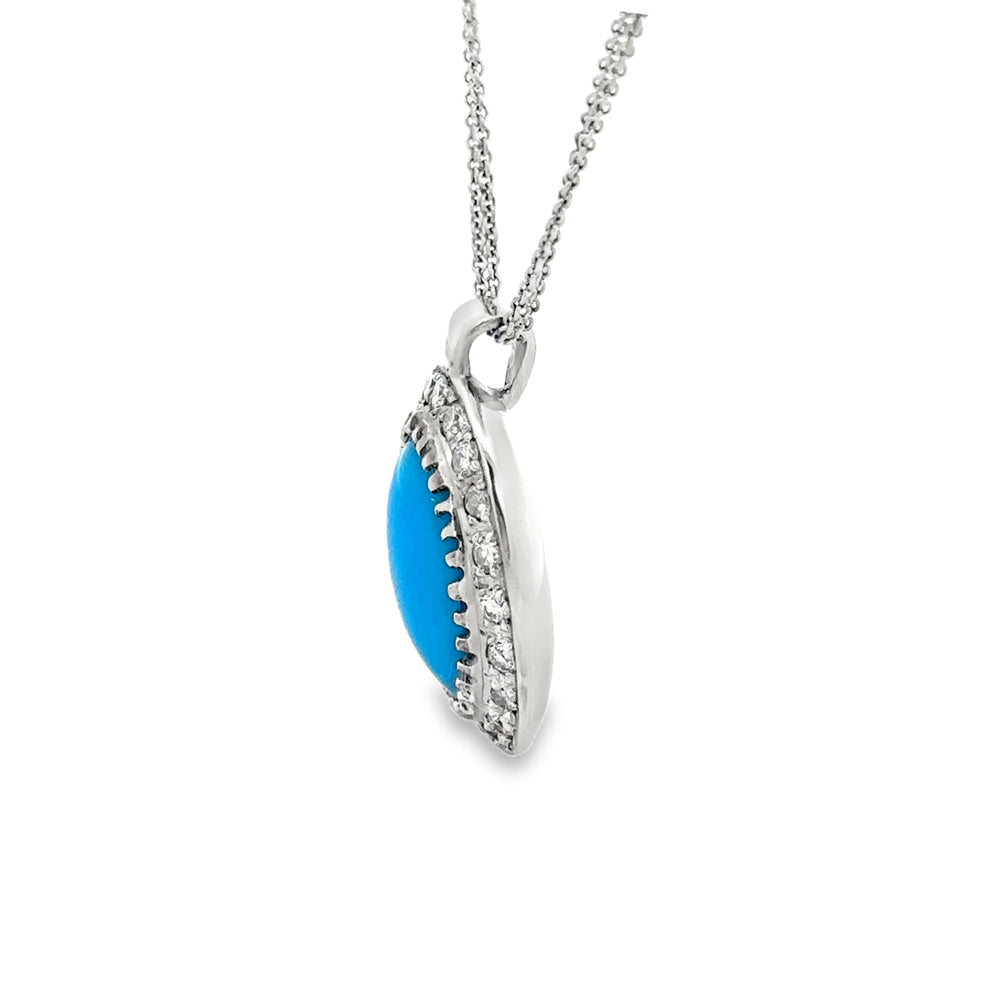 14K White Gold Turquoise and Round Cut Diamond Pendant