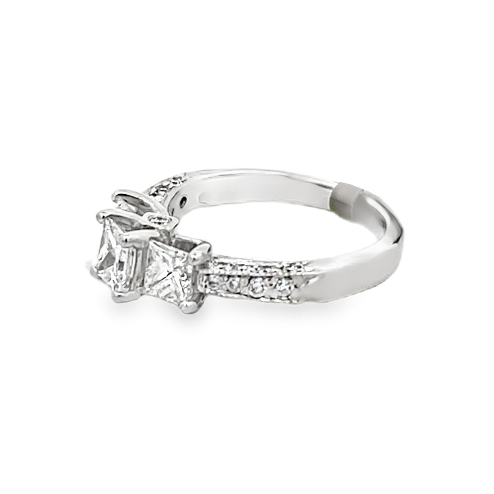 14K White Gold Princess and Round Cut Diamond Three-Stone Engagement Ring 1.19ctw