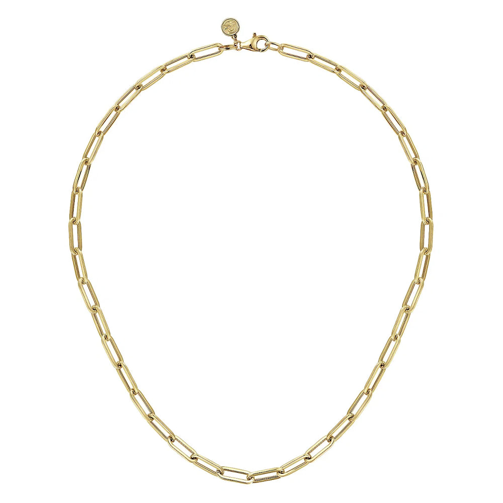 • 14K Yellow Gold Hollow Paperclip Necklace—Lightweight Hollow Chain Construction
