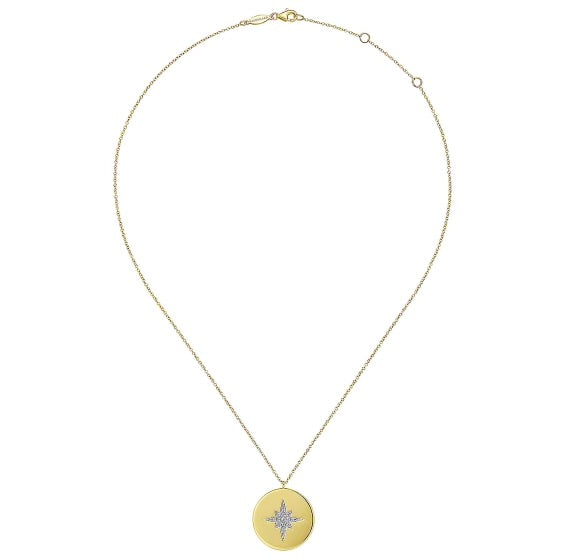 A Yellow Gold Diamond Star Medallion Necklace in 14K yellow gold that evokes modern grace and quiet confidence. The 0.18ct near-colorless diamonds add subtle brilliance while the star motif brings a sense of serenity—an elegant keepsake offering refined sparkle and lasting wear. View our Jewelry Collections